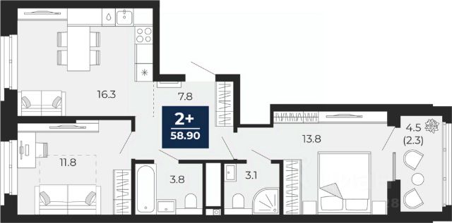 Продается 2-комн. квартира с предчистовой отделкой в ЖК "Республики 205" на 3 этаже. Общая площадь: 91.63 кв.м., жилая: 22.4 кв.м., площадь просторной кухни-гостиной: 29.7 кв.м. Квартира угловая, очень светлая, естественная вентиляция при открытии окон. В квартире два балкона и одна лоджия, два совмещенных санузла. Терраса представляет собой роскошную зону отдыха, где вы на свой вкус можете создать атмосферу комфорта и уюта. Высота потолков 2.7 м.