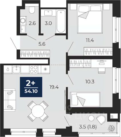 Идентификатор квартиры по базе застройщика: РСП03. #ZSzBDA 2-комнатная квартира в новостройке с отделкой в округе Ленинский в городе Тюмень.