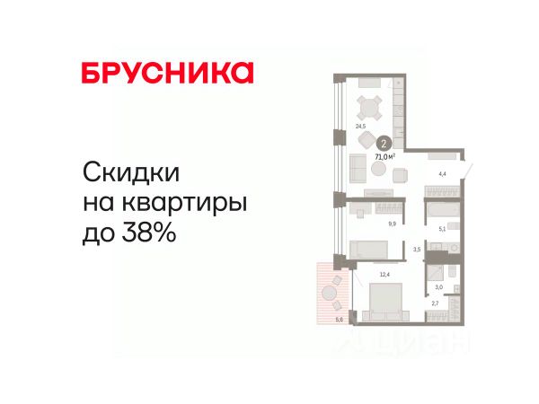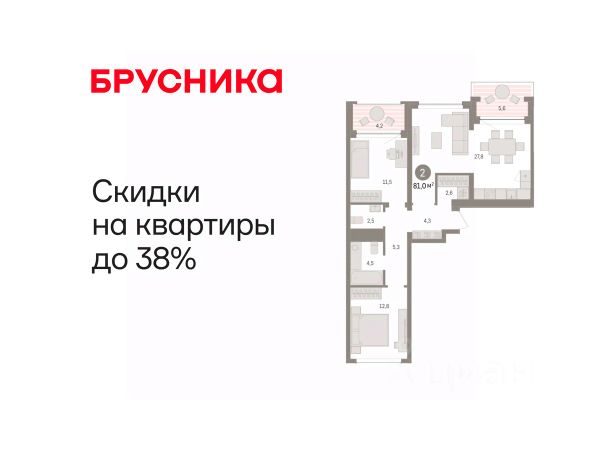 Квартира в счёт первоначального взноса по программе обмена. По всем вопросам обращайтесь в офис продаж, наши менеджеры вам все расскажут! Двухкомнатная квартира от застройщика с предчистовой отделкой в ЖК "Дом у озера" на 4 этаже. Общая площадь: 78.37 кв.м., жилая: 26.5 кв.м., площадь просторной кухни-гостиной: 26.4 кв.м. Квартира угловая, идеально подойдет любителям тишины и панорамных видов. В квартире одна лоджия, два совмещенных санузла. Высота потолков 2.7 м. Дом монолитный, многоподъездный, переменной этажности, от 2 до 8 этажей. Квартира находится в 4-й секции высотой 8 этажей в корпусе 3. На этаже 5 квартир. В подъезде 1 грузовой лифт. Окончание строительства - 2 квартал 2027 года. Оформление сделки по договору долевого участия. Квартира с кухней-гостиной и двумя спальнями в Доме у озера. Особенности планировки: вид во двор, гардеробная, лоджия, мастер-спальня, предчистовая отделка, разнесённые спальни. квартиры в нашей базе: ДМУ03-Ж4.4.5. "Дом у озера" является продолжением "Европейского квартала". Он расположен в центре заречного района города. В 2030 году здесь появится квартал, состоящий из урбан-вилл, таунхаусов, секционных домов и башни. Вокруг уже сформирована необходимая инфраструктура: детские сады, школы, спортивный комплекс, продуктовые магазины, аптеки, кофейни, рестораны и салоны красоты. Путь до центра города занимает 7 минут на машине. Озеро Тихое — ценный рекреационный ресурс. Брусника вернула ему прежнее значение и сделала новой точкой притяжения для жителей микрорайона. Ключевым элементом концепции благоустройства стала вода. В каждой части квартала архитекторы нашли для нее свою форму. Вдоль пешеходных улиц разместили искусственные ручьи, на центральной площади — фонтан и дождевые сады. Основная точка притяжения жителей — озеро и выходящий на его сторону променад. Здесь мы организуем смотровые площадки и расположим летние террасы кафе и ресторанов. Тесную связь застройки с ландшафтом обеспечивает многоуровневое озеленение. Буфер из деревьев и кустарников по периметру квартала превращается в естественный ветрозащитный экран. Такое решение позволяет создать на территории "Дома у озера" комфортный микроклимат. Подъезды "Дома у озера" с прозрачными входными группами и большими лифтами. Для мест общего пользования архитекторы разработали новую интерьерную коллекцию, вдохновленную эклектичными восточными мотивами. В отделке сочетаются коричневый, желтый и белый цвета, повторяющие колористические решения фасадов. Декоративные перегородки, установленные в лобби, напоминают машрабию — элемент арабской архитектуры в виде узорной решетки. За счет мягкой мебели, многоуровневого освещения теплых оттенков и предметов декора (например, зеркал и картин) холлы воспринимаются как продолжение квартиры. #Zm9BMw 2-комнатная квартира в новостройке с отделкой в микрорайоне Заречный 1-й в городе Тюмень.
