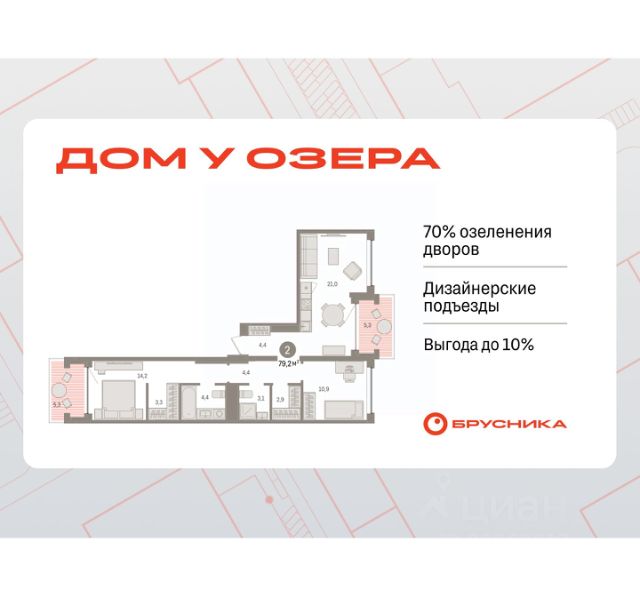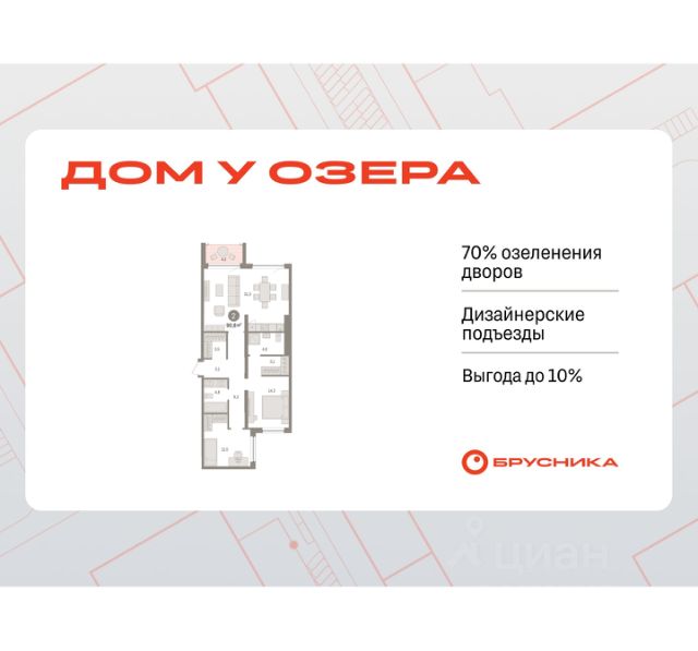 Квартира в счёт первоначального взноса по программе обмена. Информация по телефону, наши менеджеры вам все расскажут! Просторная 2-комн. квартира с предчистовой отделкой в ЖК "Дом у озера" на 1 этаже. Общая площадь: 170.64 кв.м. Высота потолков 2.7 м. Дом монолитный, многоподъездный, переменной этажности, от 2 до 8 этажей. Квартира находится в 1-й секции высотой 2 этажа в корпусе 3. На этаже 2 квартиры. Окончание строительства - 2 квартал 2027 года. Оформление сделки по договору долевого участия. Продаётся с паркингом. Двухуровневая квартира с кухней-гостиной и двумя спальнями в Доме у озера. Особенности планировки: окна на две стороны, второй санузел, гардеробная, окна в пол, рабочий кабинет, двухуровневая, вид во двор, отдельный вход, стактхаус, второй свет, разнесённые спальни, предчистовая отделка, терраса, постирочная. квартиры в нашей базе: ДМУ03-Ж1.1.1. "Дом у озера" является продолжением "Европейского квартала". Он расположен в центре заречного района города. В 2030 году здесь появится квартал, состоящий из урбан-вилл, таунхаусов, секционных домов и башни. Вокруг уже сформирована необходимая инфраструктура: детские сады, школы, спортивный комплекс, продуктовые магазины, аптеки, кофейни, рестораны и салоны красоты. Путь до центра города занимает 7 минут на машине. Озеро Тихое — ценный рекреационный ресурс. Брусника вернула ему прежнее значение и сделала новой точкой притяжения для жителей микрорайона. Ключевым элементом концепции благоустройства стала вода. В каждой части квартала архитекторы нашли для нее свою форму. Вдоль пешеходных улиц разместили искусственные ручьи, на центральной площади — фонтан и дождевые сады. Основная точка притяжения жителей — озеро и выходящий на его сторону променад. Здесь мы организуем смотровые площадки и расположим летние террасы кафе и ресторанов. Тесную связь застройки с ландшафтом обеспечивает многоуровневое озеленение. Буфер из деревьев и кустарников по периметру квартала превращается в естественный ветрозащитный экран. Такое решение позволяет создать на территории "Дома у озера" комфортный микроклимат. Подъезды "Дома у озера" с прозрачными входными группами и большими лифтами. Для мест общего пользования архитекторы разработали новую интерьерную коллекцию, вдохновленную эклектичными восточными мотивами. В отделке сочетаются коричневый, желтый и белый цвета, повторяющие колористические решения фасадов. Декоративные перегородки, установленные в лобби, напоминают машрабию — элемент арабской архитектуры в виде узорной решетки. За счет мягкой мебели, многоуровневого освещения теплых оттенков и предметов декора (например, зеркал и картин) холлы воспринимаются как продолжение квартиры. #2Sdvs2 2-комнатная квартира в новостройке с отделкой в микрорайоне Заречный 1-й в городе Тюмень.