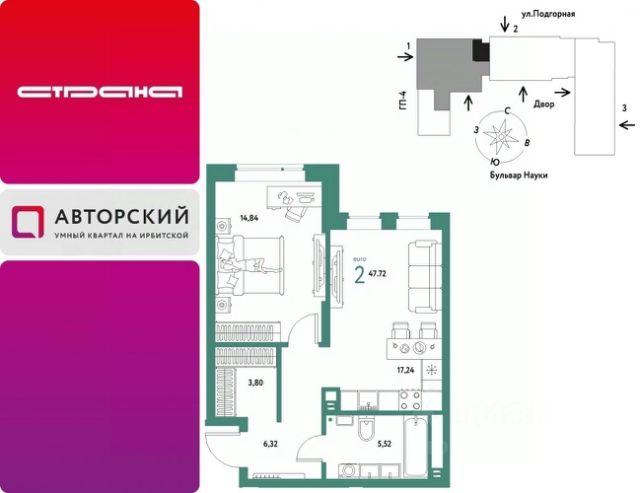 Новая квартира в ЖК "Авторский" напрямую от федерального застройщика "Страна Девелопмент". Продается 2комнатная квартира на 5 этаже от застройщика Страна Девелопмент. Площадь квартиры 45,52 кв. м. Жилой комплекс "Авторский" — квартал для авторов своей жизни от федерального застройщика "Страна Девелопмент" вблизи исторического центра — до Моста Влюблённых 4 минуты на авто, а ещё рядом ведущие вузы Тюмени. ПРЕИМУЩЕСТВА - Тематический бульвар объединяет дома и закрытые дворы квартала в единую экосистему: зелень, перголы для отдыха, детские и спортивные площадки. По вечерам бульвар преображается: освещение создаёт уютную атмосферу. - Новый детский сад рядом, который появится в 2026 году прямо в одном из корпусов комплекса. В нём выделено 150 мест для малышей. - Во дворах нет машин, шума, выхлопных газов и посторонних людей. Всё пространство разделено на зоны по интересам и возрастам. Для детей — игровые площадки из эко-материалов и мягкая защита от падений. Для взрослых — зоны отдыха, воркаут-площадки и тропинки для неспешных прогулок. ОТДЕЛКА Квартиры сдаются с предчистовой отделкой: произведена разводка электричества и отопления, выполнена стяжка пола, стены выровнены "под маяк", установлены розетки, выключатели и радиаторы. ДИЗАЙНЕРСКАЯ ОТДЕЛКА При покупке квартиры в ЖК "Авторский" можно включить стоимость ремонта в ипотеку. Пять вариантов на выбор: хлопковая нить, серый шторм, белый камень, шалфей, голубой вереск. СПОСОБЫ ПОКУПКИ Сотрудники "Страна Девелопмент" будут сопровождать вас на каждом этапе сделки, помогут получить одобрение по ипотеке или снизить ежемесячный платеж. - ипотека - рассрочка - с использованием материнского капитала -100% оплата наличными Цены на квартиры указаны без учета скидок. На консультации менеджер подскажет, какие акции действуют, и как получить одобрение по ипотеке с низкой ставкой.