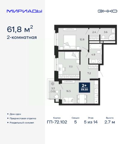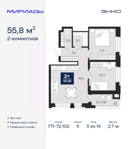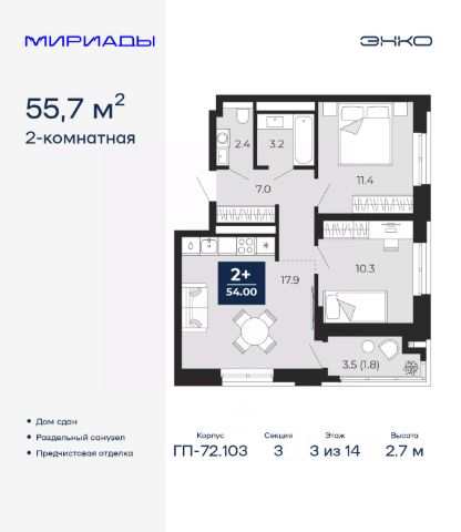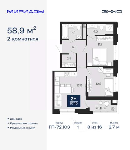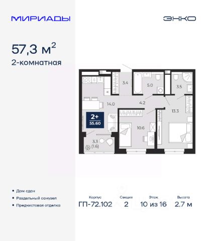 Спешите оформить бронирование по акционной цене, предложение ограничено! Стоимость квартиры указана со скидкой, ваша экономия составит 303,500 руб. Информация по телефону, наши менеджеры вам все расскажут. Двухкомнатная квартира с европланировкой и предчистовой отделкой в ЖК "Мириады" на 8 этаже. Общая площадь: 40.12 кв.м., жилая: 21.05 кв.м., общая площадь гостиной-столовой с кухонной зоной: 15.5 кв.м. Европланировка, кухня и гостиная объединены в одно просторное помещение. Комнаты изолированные, все окна выходят на одну сторону. В квартире одна лоджия, один совмещенный санузел. Высота потолков 2.7 м. Дом монолитный, двухподъездный, переменной этажности, от 14 до 16 этажей. Квартира находится во 2-й секции высотой 16 этажей в корпусе ГП-72.107. На этаже 10 квартир. В подъезде 1 пассажирский и 1 грузовой лифт. Окончание строительства - 3 квартал 2028 года. Оформление сделки по договору долевого участия. Вселенная бесконечных историй. Ранее невиданный Тюмени масштаб: территория 240 гектаров и 1 650 000 м² застройки. Мириады это город масштабных перемен и больших возможностей. Город зеленых рощ и зеркальных озер. Город для работы, учебы и развлечений. Город для детей и их родителей. Город для всех и каждого. Проект расположен в районе Мыс рядом с ТРЦ "Тюмень Сити Молл" в границах улицы Тимофея Чаркова, Тобольского тракта и объездной дороги. Срок полного освоения территории - до 2034 года. #ZMDgD8 2-комнатная квартира в новостройке с отделкой в Тюменской области.