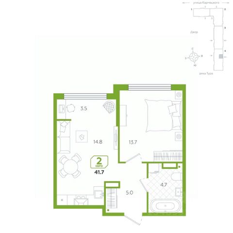 Квартира находится в корпусе 212. Дом монолитный, одноподъездный, высотой 21 этаж. На этаже 8 квартир. В подъезде 2 пассажирских и 1 грузовой лифт. Окончание строительства - 4 квартал 2026 года. Оформление сделки по договору долевого участия.