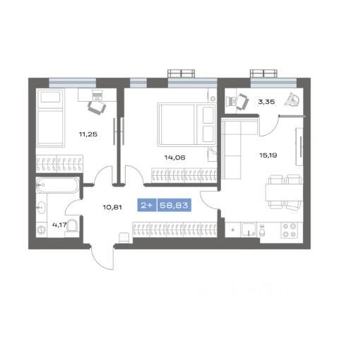 Продаётся 2-комнатная квартира в строящемся доме (ГП-2), срок сдачи: IV-кв. 2026, общей площадью 58.83 кв.м., на 4 этаже. Новый жилой комплекс "Ритм" от застройщика "СЗ Улей Девелопмент" расположен по адресу: г Тобольск, Территория Зоны Вузов.