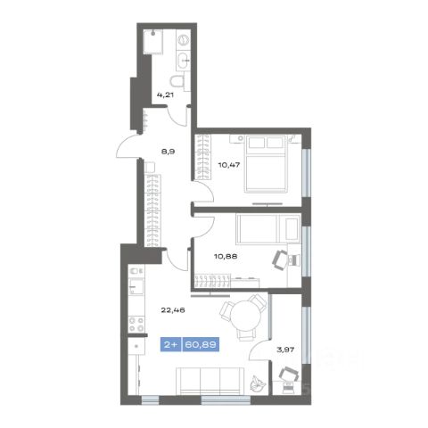 Продаётся 2-комнатная квартира в строящемся доме (ГП-2), срок сдачи: IV-кв. 2026, общей площадью 60.89 кв.м., на 14 этаже. Новый жилой комплекс "Ритм" от застройщика "СЗ Улей Девелопмент" расположен по адресу: г Тобольск, Территория Зоны Вузов.