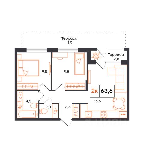 Квартира с кухней-гостиной и двумя спальнями в Октябрьском на Туре. Особенности планировки: балкон, вид во двор, второй санузел, предчистовая отделка, тёплая лоджия. квартиры в нашей базе: КО-07.1-1-1.13.2. Район Проект расположен на берегу реки, в одном из самых живописных и экологичных районов Тюмени. За последние годы облик района изменился. По соседству с индивидуальной застройкой выросли многоквартирные дома. При проектировании "Октябрьского на Туре" нашей приоритетной задачей стало сохранение природного ландшафта: мы постарались деликатно вписать в него современную архитектуру. Квартал удачно расположен с точки зрения дорожной инфраструктуры. На автомобиле путь до центра города составит 15 минут. Добраться до набережной и главных тюменских достопримечательностей можно и на общественном транспорте. В пешей доступности находится автобусная остановка. Проект По мастер-плану здесь будет восемь домов. Ядро застройки составляют замкнутые кварталы переменной этажности. Их высотность понижается по мере приближения к реке. На углах участка мы разместили башни-доминанты. Одной из достопримечательностей квартала станет парк на Туре — здесь появится зеленая зона протяженностью около 6 километров для пеших и велопрогулок. Смысловая ось квартала — широкая главная улица с высаженными вдоль неё высокими деревьями. Они создают тень и работают как шумо- и пылезащитные экраны. Это место сосредоточения основных пешеходных и транспортных потоков, на сторону которых мы ориентировали большинство коммерческих помещений. Отсюда жители могут свернуть на тихие соседские улицы и попасть на внутриквартальную площадь — ещё одну точку притяжения. #IDoBfb 2-комнатная квартира в новостройке в микрорайоне ДОК в городе Тюмень.