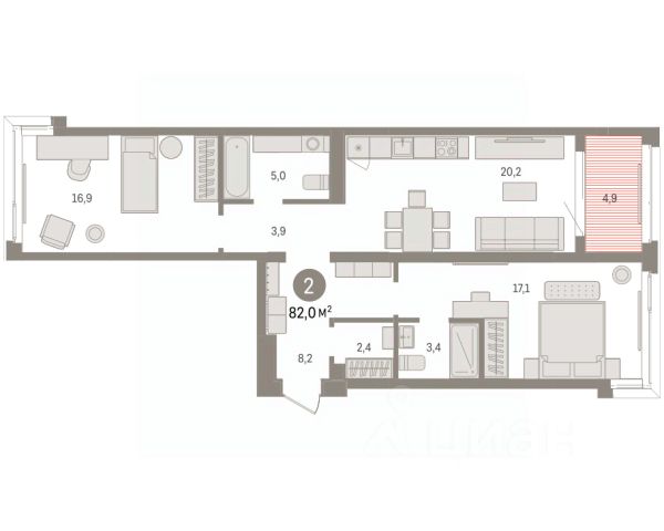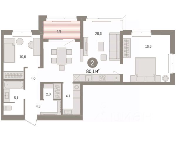 Квартира в счёт первоначального взноса по программе обмена. Звоните, наши менеджеры вам все расскажут! Просторная 2-комн. квартира с предчистовой отделкой в Кварталы "На Минской" на 4 этаже. Общая площадь: 77.85 кв.м., жилая: 22.4 кв.м., площадь просторной кухни-гостиной: 22.1 кв.м. Квартира угловая, идеально подойдет любителям тишины и панорамных видов. В квартире один балкон, два совмещенных санузла. Наличие в квартире террасы открывает возможность для создания зон отдыха в кругу семьи и друзей. Высота потолков 2.7 м. Дом монолитный, многоподъездный, переменной этажности, от 7 до 16 этажей. Квартира находится в 1-й секции высотой 16 этажей в корпусе 1. На этаже 8 квартир. В подъезде 2 пассажирских лифта. Окончание строительства - 4 квартал 2026 года. Оформление сделки по договору долевого участия. Квартира с кухней-гостиной и двумя спальнями в кварталах "На Минской". Особенности планировки: гардеробная, панорамное остекление, лоджия, предчистовая отделка, мастер-спальня. квартиры в нашей базе: МНС01-Ж1.4.4. В сердце города Кварталы "На Минской" находятся в самом центре. За десять минут можно дойти до площади 400-летия Тюмени и Большого Драматического театра, Тюменского индустриального и медицинского университетов, спортивного комплекса "Строймаш", ТРЦ "Гудвин" и "Премьер", Тюменского технопарка. Поблизости много детских садов, школ и поликлиник. Пространство разного опыта Создавая кварталы "На Минской" мы вдохновлялись Хакскими дворами в Берлине и улицей Давида Агмашенебели в Тбилиси. И первые и вторая — яркие разнообразные пространства, сформированные прогрессивными архитекторами и притягивающие городских интеллектуалов. Престижная недвижимость здесь соседствует с барами, ресторанами, креативными кластерами и бюро, дизайнерскими лавками. Полезные улицы Кварталы "На Минской" свяжет сеть променадов, автомобильных проездов и велодорожек. Уличный фронт проекта мы сформируем с помощью аллейной посадки деревьев. Они создадут тень для ресторанов и кафе на первых этажах, визуально отделят проезжую и пешеходную части, снизят объём пыли и уровень шума. Мы реализуем проект в районе с развитой базовой инфраструктурой. И поэтому тщательно подошли к программированию коммерции, посчитав, что её основная задача — "закрывать" более высокие потребности жителей. Здесь может появиться пекарня с вкусными круассанами, турагентство на случай, если захочется перезимовать в Сочи, массажный кабинет, ресторан, когда надоело есть дома и многое другое. #24f3g0 Купить 2-комнатную квартиру в новостройке в микрорайоне Драмтеатр (Ленинский) в городе Тюмень.