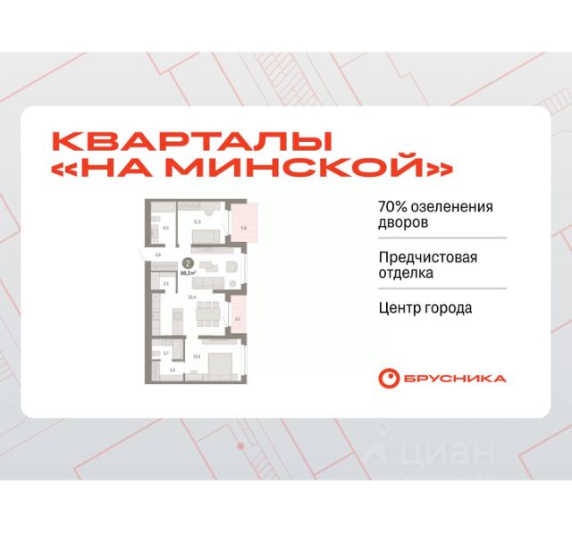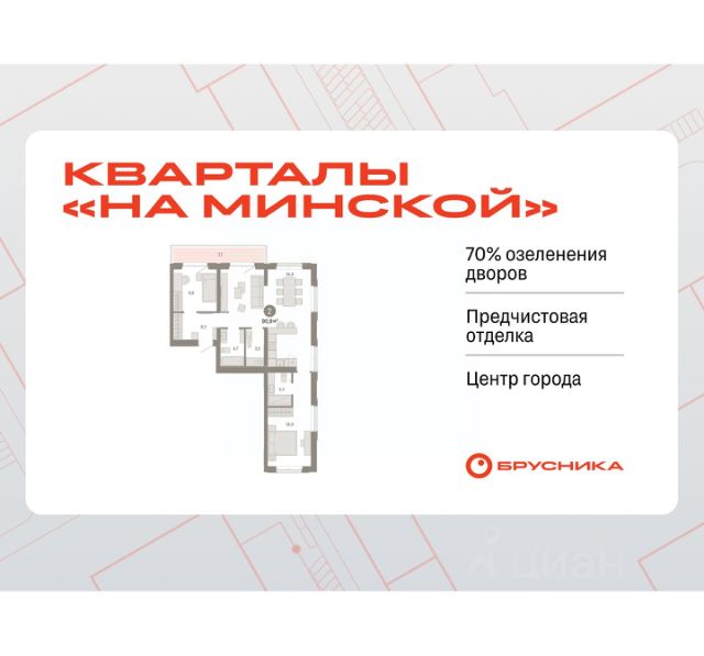 Квартира в счёт первоначального взноса по программе обмена. Информация по телефону, мы вам все подробно расскажем! Просторная двухкомнатная квартира с предчистовой отделкой в Кварталы "На Минской" на 2 этаже. Общая площадь: 74.79 кв.м., жилая: 24.1 кв.м., площадь просторной кухни-гостиной: 24.6 кв.м. Комнаты изолированные, все окна выходят на одну сторону. В квартире два совмещенных санузла. Высота потолков 2.7 м. Дом монолитный, многоподъездный, переменной этажности, от 7 до 11 этажей. Квартира находится в 10-й секции высотой 7 этажей в корпусе 2. На этаже 5 квартир. В подъезде 1 пассажирский и 1 грузовой лифт. Окончание строительства - 1 квартал 2027 года. Оформление сделки по договору долевого участия. Квартира с кухней-гостиной и двумя спальнями в кварталах "На Минской". Особенности планировки: гардеробная, разнесённые спальни, предчистовая отделка, мастер-спальня. квартиры в нашей базе: МНС02-Ж10.2.2. В сердце города Кварталы "На Минской" находятся в самом центре. За десять минут можно дойти до площади 400-летия Тюмени и Большого Драматического театра, Тюменского индустриального и медицинского университетов, спортивного комплекса "Строймаш", ТРЦ "Гудвин" и "Премьер", Тюменского технопарка. Поблизости много детских садов, школ и поликлиник. Пространство разного опыта Создавая кварталы "На Минской" мы вдохновлялись Хакскими дворами в Берлине и улицей Давида Агмашенебели в Тбилиси. И первые и вторая — яркие разнообразные пространства, сформированные прогрессивными архитекторами и притягивающие городских интеллектуалов. Престижная недвижимость здесь соседствует с барами, ресторанами, креативными кластерами и бюро, дизайнерскими лавками. Полезные улицы Кварталы "На Минской" свяжет сеть променадов, автомобильных проездов и велодорожек. Уличный фронт проекта мы сформируем с помощью аллейной посадки деревьев. Они создадут тень для ресторанов и кафе на первых этажах, визуально отделят проезжую и пешеходную части, снизят объём пыли и уровень шума. Мы реализуем проект в районе с развитой базовой инфраструктурой. И поэтому тщательно подошли к программированию коммерции, посчитав, что её основная задача — "закрывать" более высокие потребности жителей. Здесь может появиться пекарня с вкусными круассанами, турагентство на случай, если захочется перезимовать в Сочи, массажный кабинет, ресторан, когда надоело есть дома и многое другое. #2sZAU9 Купить 2-комнатную квартиру в новостройке в микрорайоне Драмтеатр (Ленинский) в городе Тюмень.