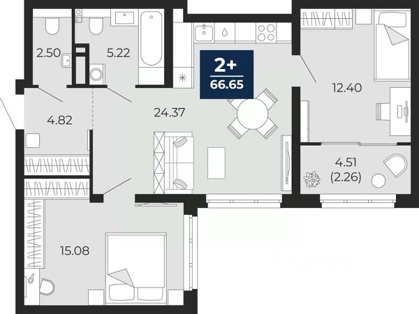 Просторная 2-комн. квартира в ЖК "Беринг" на 2 этаже. Квартира без отделки, новый владелец может сделать ремонт по своему дизайн-проекту. Общая площадь: 58.97 кв.м., жилая: 23.58 кв.м., площадь просторной кухни-столовой: 17.86 кв.м. Угловая квартира, очень светлая, естественная вентиляция при открытии окон. В квартире одна лоджия, один совмещенный и один раздельный санузел. Высота потолков 2.75 м. Дом монолитный, многоподъездный, переменной этажности, от 9 до 22 этажей. Квартира находится в 73.6-й секции высотой 9 этажей в корпусе ГП-73. На этаже 5 квартир. В подъезде 1 пассажирский и 1 грузовой лифт. Окончание строительства - 4 квартал 2025 года. Оформление сделки по договору долевого участия. Подобно знаменитому исследователю, мы чувствуем себя первооткрывателями этой локации. Хотим показать новую суть места, сформировать для вас жизненный опыт, которого ещё не было. Беринг — район зелёного цвета. Беринг — район, который откроется вам с другой стороны. Впечатлит новым уровнем комфорта и качеством жизни. Беринг — открытие на карте города. Первый квартал расположен в районе Тура, в границах улиц: Камчатская Западносибирская Энтузиастов. Вокруг уже есть всё для того, чтобы ежедневная рутина была лишь частью жизни и не доставляла дискомфорта. Школы и детские сады, магазины и аптеки, поликлиника, места для семейного отдыха, пеших и велопрогулок, и даже рыбалки. Масштабное озеленение дворов — визитная карточка ЭНКО и ваш оазис спокойствия, чтобы отвлечься от повседневности. Раскидистые деревья, кустарники, травы и цветы — осталось остановиться, вдохнуть и расслабиться, глядя на эту природную красоту. Стилистика подъездов продолжает концепцию Беринга, вдохновлённого Камчаткой: сдержанный, но при этом впечатляющий дизайн соседствует с удобством и функциональностью. #ZU5tov