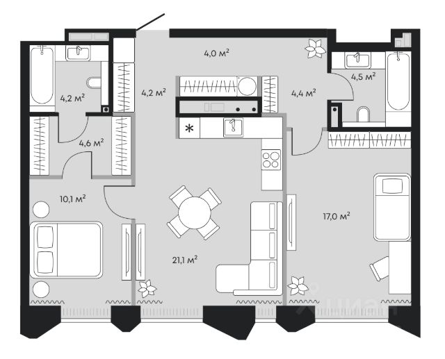 Квартира с приватными спальнями в квартале премиум-класса. Это единственный проект с доступом одновременно к двум главным достопримечательностям города — набережной и пешеходному бульвару. Экспозиционная планировка строго разделяет личное и общее пространство в квартире. Она предусматривает две спальни и кухню-гостиную. Высота окон — 2,4 метра, поэтому в комнаты проникает много естественного света. В спальне спроектировано радиусное окно для бесшовного обзора на две стороны. Профили выполнены из золотистого алюминия. Витражи с тройным остеклением и двухкамерным стеклопакетом. Они не пропускают холод и жар — это сохраняет комфортный микроклимат в квартире. Внутри пола встроены бесшумные конвекторы. Они создают естественную циркуляцию теплого воздуха и не загораживают вид из окна. Узнать детали проекта и договориться о персональной презентации можно по номеру, указанному в объявлении. Продается 2-комнатная квартира в новостройке в микрорайоне Исторический в городе Тюмень.