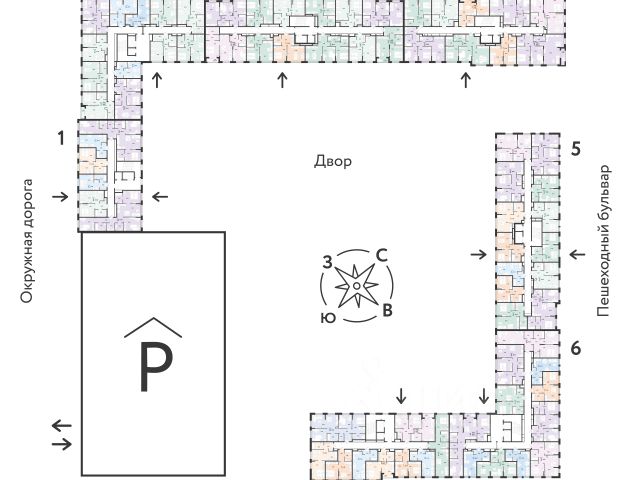 На территории комплекса находятся 2 8-ми этажных паркинга и более 1000 м/м на открытой парковке.