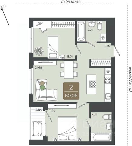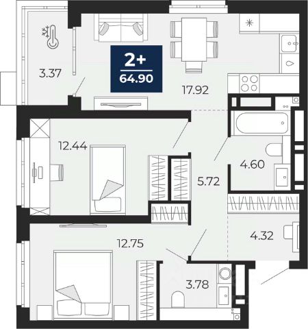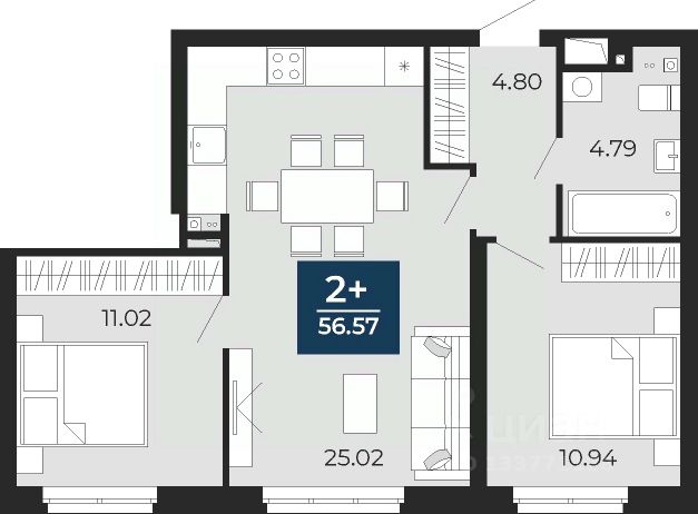 Продаётся квартира площадью 56 м2 в жилом комплексе "Айрис". Квартира находится на 3 этаже, жилая площадь квартиры 22.9 м2, площадь просторной кухни — 19.4 м2. Среди особенностей планировки — изолированные комнаты с окнами на одну сторону, 1 совмещённый санузел. Срок сдачи — III кв. 2027 Жилой комплекс "Айрис" — это: - фиджитал-квартал в Тюмени - дома высотой от 7 до 25 этажей - квартиры с системой "Умный дом" - цифровые технологии как элемент благоустройства Окружение В нескольких минутах ходьбы от дома — парк "Комарово" с волейбольной площадкой, открытым кинотеатром, зонами для барбекю и катком. Неподалеку от Айрис находится центр иппотерапии, где можно покататься на лошадях и взять уроки верховой езды. На территории Айрис появится собственный парк с прогулочными аллеями. Инфраструктура В 5-10 минутах от квартала открыты 2 детских сада и гимназия. На шопинг можно отправиться в торговые комплексы "Колумб" и "Кристалл" — они находятся недалеко от дома. Благоустройство Уютный двор — приватное пространство для жителей. В беседках можно будет почитать книгу в тишине, а в тени деревьев устроиться на пикник. На крыше многоуровневого паркинга будет лаунж-зона с кинотеатром, баскетбольная площадка и воркаут-пространство, где можно позаниматься с виртуальным тренером — достаточно отсканировать код. Лобби Интерьеры лобби выполнены в пастельных тонах с элементами фиджитал-решений. Для отдыха и ожидания гостей создана лаунж-зона. Также есть гостевые санузлы. Колясочные Возвращайтесь налегке после прогулки с малышом — оставить коляску можно в специальном помещении на первом этаже. Кладовые Для сезонных и габаритных вещей предусмотрены отдельные кладовые на цокольном этаже. В каждом помещении уже проведено электричество и выполнена стяжка пола. Паркинг На территории — два многоуровневых наземных паркинга. Один из них примыкает к домам — из него можно напрямую пройти в парадные. Планировки Планировки квартала — от компактной студии до сити-хауса с собственным палисадником — соответствуют любым жизненным сценариям. Можно выбрать квартиры с террасами и готовыми дизайнерскими интерьерами. Продам 2-комнатную квартиру в новостройке в округе Калининский в городе Тюмень.