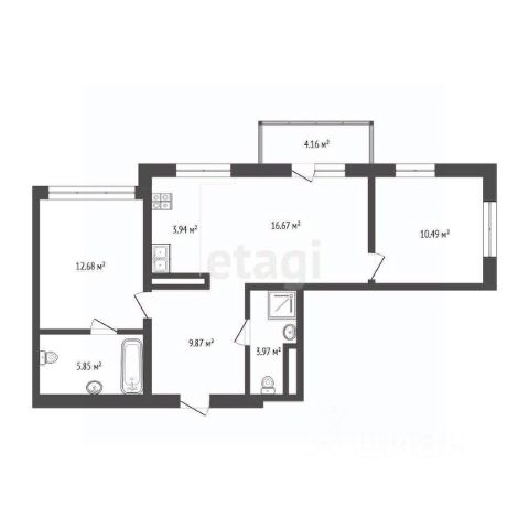 Продаётся квартира площадью 58.1 м2 в жилом комплексе "Айрис".