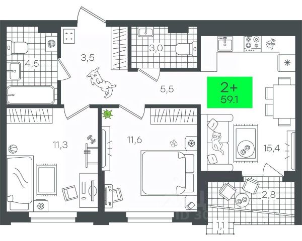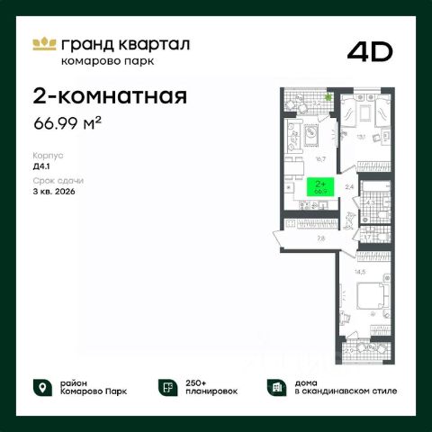 • ✓ В базе Циан 24 2-комнатных квартир в новостройке в жилом районе Комарово Парк в городе Тюмень
