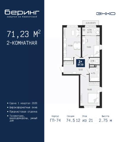 Идентификатор квартиры по базе застройщика: МЕД01-01-2-2. #z1glA6