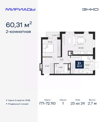 Двухкомнатная квартира с предчистовой отделкой в ЖК "Республики 205" на 8 этаже. Общая площадь: 105.32 кв.м. Высота потолков 2.7 м. Купить квартиру можно с помощью программ покупки от застройщика Брусника: - ипотека по эксклюзивной ставке с помощью в получении положительного кредитного решения через сервис ипотечный брокер; - квартиры в рассрочку без процентов от застройщика Брусника; - обмен квартиры на новую. Получить одобрение ипотеки или рассрочку, а также осуществить обмен квартир можно онлайн. Дом монолитный, многоподъездный, переменной этажности, от 7 до 16 этажей. Квартира находится во 2-й секции высотой 8 этажей в корпусе 2. На этаже 4 квартиры. В подъезде 1 грузовой лифт. Начало строительства - 1 квартал 2024 года. Окончание строительства - 1 квартал 2026 года. Оформление сделки по договору долевого участия. Район Проект расположен в границах улиц Пермякова, Энергетиков, Воровского и Республики. До центра города — 10 минут на машине. Рядом — автомобильная развязка на пересечении улиц Пермякова и Республики. В шаговой доступности есть школы, детские сады, поликлиники, крупный торговый центр, автовокзал и несколько скверов. Проект "Республики 205" — это проект комплексного развития территории, уникальный по своему наполнению. Переосмысляя бывшую территорию завода медицинского оборудования, мы создадим новое место силы — микрорайон, насыщенный деловой, развлекательной, рекреационной, игровой, образовательной и медицинской инфраструктурой. До каждого полезного сервиса здесь можно будет дойти за 15 минут. Локальными центрами "Республики 205" будут общественные пространства — скверы, парки, бульвары и площади. В границах нашего участка мы намерены разместить школу, рассчитанную на 1550 учеников, два детских сада на 300 мест и встроенный детский сад на 100 мест. В одном из цехов бывшего завода расположится креативный кластер "Кузница". Он станет площадкой для нескольких институций — галереи, лектория, книжного магазина-библиотеки, кинобара и точек креативного pop-up-ритейла. Пешеходные бульвары внутри района соединят между собой улицу ресторанов, детские и спортивные площадки, событийную площадь и летний кинотеатр. Идентификатор квартиры по базе застройщика: РСП-02-2-2. #2UfFOc Продам 2-комнатную квартиру в новостройке в округе Ленинский в городе Тюмень.