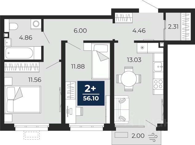 2-комн. квартира от застройщика с предчистовой отделкой в Кварталы "На Минской" на 3 этаже. Общая площадь: 65.09 кв.м., жилая: 23 кв.м., площадь просторной кухни-гостиной: 21.3 кв.м. Комнаты изолированные, все окна выходят на одну сторону. В квартире одна лоджия, два совмещенных санузла. Высота потолков 2.7 м. Дом монолитный, многоподъездный, переменной этажности, от 7 до 11 этажей. Квартира находится во 2-й секции высотой 7 этажей в корпусе 2. На этаже 7 квартир. В подъезде 1 пассажирский и 1 грузовой лифт. Окончание строительства - 1 квартал 2027 года. Оформление сделки по договору долевого участия. Квартира с кухней-гостиной и двумя спальнями в кварталах "На Минской". Особенности планировки: балкон, вид во двор, гардеробная, мастер-спальня, предчистовая отделка, разнесённые спальни. квартиры в нашей базе: МНС02-Ж2.3.2. В сердце города Кварталы "На Минской" находятся в самом центре. За десять минут можно дойти до площади 400-летия Тюмени и Большого Драматического театра, Тюменского индустриального и медицинского университетов, спортивного комплекса "Строймаш", ТРЦ "Гудвин" и "Премьер", Тюменского технопарка. Поблизости много детских садов, школ и поликлиник. Пространство разного опыта Создавая кварталы "На Минской" мы вдохновлялись Хакскими дворами в Берлине и улицей Давида Агмашенебели в Тбилиси. И первые и вторая — яркие разнообразные пространства, сформированные прогрессивными архитекторами и притягивающие городских интеллектуалов. Престижная недвижимость здесь соседствует с барами, ресторанами, креативными кластерами и бюро, дизайнерскими лавками. Полезные улицы Кварталы "На Минской" свяжет сеть променадов, автомобильных проездов и велодорожек. Уличный фронт проекта мы сформируем с помощью аллейной посадки деревьев. Они создадут тень для ресторанов и кафе на первых этажах, визуально отделят проезжую и пешеходную части, снизят объём пыли и уровень шума. Мы реализуем проект в районе с развитой базовой инфраструктурой. И поэтому тщательно подошли к программированию коммерции, посчитав, что её основная задача — "закрывать" более высокие потребности жителей. Здесь может появиться пекарня с вкусными круассанами, турагентство на случай, если захочется перезимовать в Сочи, массажный кабинет, ресторан, когда надоело есть дома и многое другое. #ZsFfmM Продам 2-комнатную квартиру в новостройке в округе Ленинский в городе Тюмень.