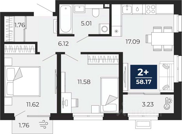 Двухкомнатная квартира от застройщика с предчистовой отделкой в Кварталы "На Минской" на 4 этаже. Общая площадь: 85.79 кв.м. Высота потолков 2.7 м. Дом монолитный, многоподъездный, переменной этажности, от 7 до 11 этажей. Квартира находится в 4-й секции высотой 8 этажей в корпусе 2. На этаже 6 квартир. В подъезде 1 пассажирский и 1 грузовой лифт. Окончание строительства - 1 квартал 2027 года. Оформление сделки по договору долевого участия. Квартира с кухней-гостиной и двумя спальнями в кварталах "На Минской". Особенности планировки: гардеробная, лоджия, мастер-спальня, предчистовая отделка. квартиры в нашей базе: МНС02-Ж4.4.3. В сердце города Кварталы "На Минской" находятся в самом центре. За десять минут можно дойти до площади 400-летия Тюмени и Большого Драматического театра, Тюменского индустриального и медицинского университетов, спортивного комплекса "Строймаш", ТРЦ "Гудвин" и "Премьер", Тюменского технопарка. Поблизости много детских садов, школ и поликлиник. Пространство разного опыта Создавая кварталы "На Минской" мы вдохновлялись Хакскими дворами в Берлине и улицей Давида Агмашенебели в Тбилиси. И первые и вторая — яркие разнообразные пространства, сформированные прогрессивными архитекторами и притягивающие городских интеллектуалов. Престижная недвижимость здесь соседствует с барами, ресторанами, креативными кластерами и бюро, дизайнерскими лавками. Полезные улицы Кварталы "На Минской" свяжет сеть променадов, автомобильных проездов и велодорожек. Уличный фронт проекта мы сформируем с помощью аллейной посадки деревьев. Они создадут тень для ресторанов и кафе на первых этажах, визуально отделят проезжую и пешеходную части, снизят объём пыли и уровень шума. Мы реализуем проект в районе с развитой базовой инфраструктурой. И поэтому тщательно подошли к программированию коммерции, посчитав, что её основная задача — "закрывать" более высокие потребности жителей. Здесь может появиться пекарня с вкусными круассанами, турагентство на случай, если захочется перезимовать в Сочи, массажный кабинет, ресторан, когда надоело есть дома и многое другое. #ZSza7b Продам 2-комнатную квартиру в новостройке в округе Ленинский в городе Тюмень.