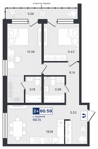 Дом монолитный, трехподъездный, переменной этажности, от 14 до 23 этажей. Квартира находится в 3-й секции высотой 14 этажей в корпусе 206. На этаже 6 квартир. В подъезде 1 пассажирский и 1 грузовой лифт. Окончание строительства - 4 квартал 2025 года. Оформление сделки по договору долевого участия.