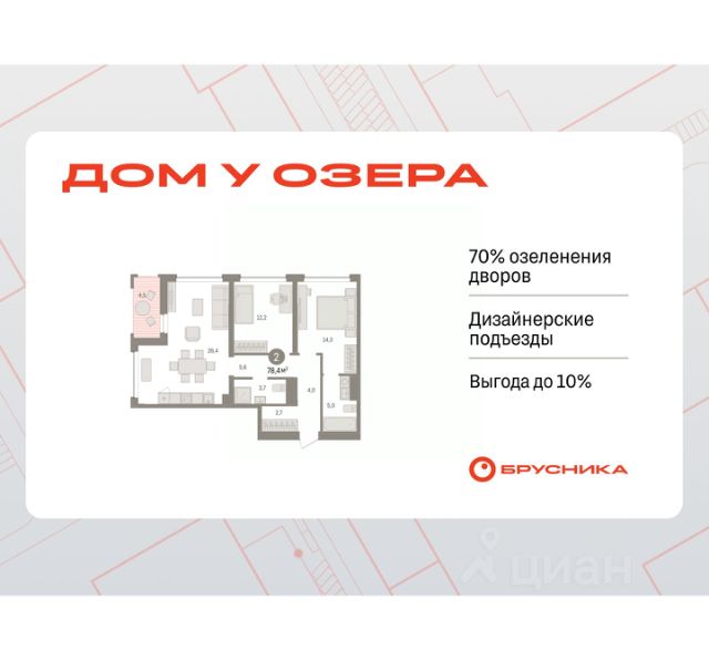 Квартира в счёт первоначального взноса по программе обмена. Информация по телефону, мы вам все подробно расскажем! 2-комн. квартира от застройщика с предчистовой отделкой в ЖК "Дом у озера" на 7 этаже. Общая площадь: 79.2 кв.м., жилая: 25.1 кв.м., площадь просторной кухни-гостиной: 21 кв.м. Квартира - распашонка, без проходных комнат, окна выходят на paзные стороны дома. В квартире два балкона, два совмещенных санузла. Высота потолков 2.7 м. Дом монолитный, многоподъездный, переменной этажности, от 2 до 8 этажей. Квартира находится в 4-й секции высотой 8 этажей в корпусе 3. На этаже 5 квартир. В подъезде 1 грузовой лифт. Окончание строительства - 2 квартал 2027 года. Оформление сделки по договору долевого участия. Продаётся с паркингом. Квартира с кухней-гостиной и двумя спальнями в Доме у озера. Особенности планировки: гардеробная, вид во двор, разнесённые спальни, предчистовая отделка, мастер-спальня, балкон. квартиры в нашей базе: ДМУ03-Ж4.7.1. "Дом у озера" является продолжением "Европейского квартала". Он расположен в центре заречного района города. В 2030 году здесь появится квартал, состоящий из урбан-вилл, таунхаусов, секционных домов и башни. Вокруг уже сформирована необходимая инфраструктура: детские сады, школы, спортивный комплекс, продуктовые магазины, аптеки, кофейни, рестораны и салоны красоты. Путь до центра города занимает 7 минут на машине. Озеро Тихое — ценный рекреационный ресурс. Брусника вернула ему прежнее значение и сделала новой точкой притяжения для жителей микрорайона. Ключевым элементом концепции благоустройства стала вода. В каждой части квартала архитекторы нашли для нее свою форму. Вдоль пешеходных улиц разместили искусственные ручьи, на центральной площади — фонтан и дождевые сады. Основная точка притяжения жителей — озеро и выходящий на его сторону променад. Здесь мы организуем смотровые площадки и расположим летние террасы кафе и ресторанов. Тесную связь застройки с ландшафтом обеспечивает многоуровневое озеленение. Буфер из деревьев и кустарников по периметру квартала превращается в естественный ветрозащитный экран. Такое решение позволяет создать на территории "Дома у озера" комфортный микроклимат. Подъезды "Дома у озера" с прозрачными входными группами и большими лифтами. Для мест общего пользования архитекторы разработали новую интерьерную коллекцию, вдохновленную эклектичными восточными мотивами. В отделке сочетаются коричневый, желтый и белый цвета, повторяющие колористические решения фасадов. Декоративные перегородки, установленные в лобби, напоминают машрабию — элемент арабской архитектуры в виде узорной решетки. За счет мягкой мебели, многоуровневого освещения теплых оттенков и предметов декора (например, зеркал и картин) холлы воспринимаются как продолжение квартиры. #ZMSBB5