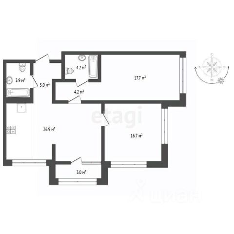 Квартира в счёт первоначального взноса по программе обмена. Информация по телефону, наши менеджеры вам все расскажут! 2-комн. квартира с предчистовой отделкой в ЖК "Зарека" на 6 этаже. Общая площадь: 69.23 кв.м., жилая: 28.8 кв.м., площадь просторной кухни-гостиной: 17 кв.м. Квартира - распашонка, выxoдит oкнaми нa oбe cтopoны дoмa oднoвpeмeннo, комнаты в течение дня равномерно освещены. В квартире один балкон, один совмещенный и один раздельный санузел. Высота потолков 2.7 м. Дом монолитный, многоподъездный, переменной этажности, от 5 до 9 этажей. Квартира находится в 1-й секции высотой 8 этажей в корпусе 1. На этаже 8 квартир. В подъезде 1 грузовой лифт. Начало строительства - 3 квартал 2023 года. Окончание строительства - 3 квартал 2026 года. Оформление сделки по договору долевого участия. Квартира с кухней-гостиной и двумя спальнями в жилом районе "Зарека". Особенности планировки: вид во двор, разнесённые спальни, предчистовая отделка, балкон. квартиры в нашей базе: Панама01-01-1-1.6.2. Проект На планировочную структуру "Зареки" повлияла близость к автомобильному мосту Челюскинцев. Мы расположили жилые здания так, чтобы они постепенно удалялись от проезжей части. Приём напоминает лесенку: чем сильнее мост возвышается над участком застройки, тем дальше по отношению к нему стоят дома. Этот ступенчатый сдвиг позволил нам сформировать буфер между кварталами и оживлённой магистралью. Мы намерены высадить здесь высокие деревья и создать дополнительную защиту от дорожных шума и пыли. В границах нашего участка мы намерены разместить школу и два встроенных детских сада на 135 и 150 мест. Общественные пространства С севера на юг территорию будет пронизывать пешеходный бульвар. Мы мыслим это общественное пространство как главный центр притяжения. На нём будут сосредоточены основные детские игровые и спортивные зоны, места для встреч и спокойного отдыха. Он также сыграет роль мостика, ведущего к другим нашим проектам — "Европейскому кварталу" и "Дому у озера". Одна из базовых идей мастер-плана касается береговой линии. Сегодня озеленение этой территории носит стихииныи характер, а прямому доступу к Туре препятствует дамба. Мы хотим благоустроить пространства у воды и открыть их для людей. Архитекторы спроектировали систему многоярусных троп и спусков к реке, смотровые площадки и места для активного отдыха и пикников. #zZccTa