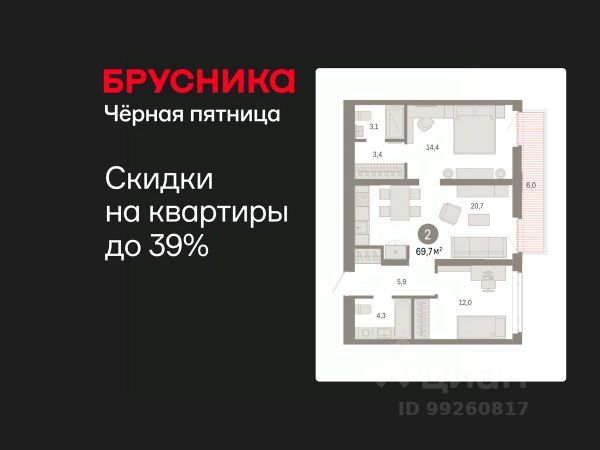Квартира в счёт первоначального взноса по программе обмена. Звоните, мы вам все подробно расскажем! 2-комн. квартира с предчистовой отделкой в ЖК "Республики 205" на 6 этаже. Общая площадь: 70.27 кв.м., жилая: 26.5 кв.м., площадь просторной кухни-гостиной: 22.2 кв.м. Квартира - распашонка, без проходных комнат, окна выходят на paзные стороны дома. В квартире один балкон, два совмещенных санузла. Высота потолков 2.7 м. Купить квартиру можно с помощью программ покупки от застройщика Брусника: - ипотека по эксклюзивной ставке с помощью в получении положительного кредитного решения через сервис ипотечный брокер; - квартиры в рассрочку без процентов от застройщика Брусника; - обмен квартиры на новую. Получить одобрение ипотеки или рассрочку, а также осуществить обмен квартир можно онлайн. Дом монолитный, многоподъездный, переменной этажности, от 7 до 16 этажей. Квартира находится в 1-й секции высотой 9 этажей в корпусе 2. На этаже 10 квартир. В подъезде 1 грузовой лифт. Начало строительства - 1 квартал 2024 года. Окончание строительства - 1 квартал 2026 года. Оформление сделки по договору долевого участия. Район Проект расположен в границах улиц Пермякова, Энергетиков, Воровского и Республики. До центра города — 10 минут на машине. Рядом — автомобильная развязка на пересечении улиц Пермякова и Республики. В шаговой доступности есть школы, детские сады, поликлиники, крупный торговый центр, автовокзал и несколько скверов. Проект "Республики 205" — это проект комплексного развития территории, уникальный по своему наполнению. Переосмысляя бывшую территорию завода медицинского оборудования, мы создадим новое место силы — микрорайон, насыщенный деловой, развлекательной, рекреационной, игровой, образовательной и медицинской инфраструктурой. До каждого полезного сервиса здесь можно будет дойти за 15 минут. Локальными центрами "Республики 205" будут общественные пространства — скверы, парки, бульвары и площади. В границах нашего участка мы намерены разместить школу, рассчитанную на 1550 учеников, два детских сада на 300 мест и встроенный детский сад на 100 мест. В одном из цехов бывшего завода расположится креативный кластер "Кузница". Он станет площадкой для нескольких институций — галереи, лектория, книжного магазина-библиотеки, кинобара и точек креативного pop-up-ритейла. Пешеходные бульвары внутри района соединят между собой улицу ресторанов, детские и спортивные площадки, событийную площадь и летний кинотеатр. Идентификатор квартиры по базе застройщика: РСП-02-1-1. #ZsmgmB