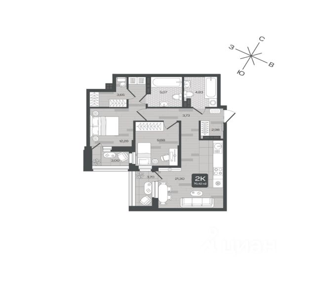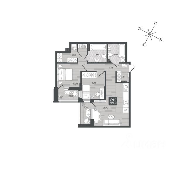 Полноценная двухкомнатная квартира станет идеальным пространством для жизни современной семьи или пары. Она отличается умной планировкой и вниманием к деталям, обеспечивая комфорт и уют во всех уголках дома. Одним из ключевых достоинств этой квартиры являются две светлые и просторные спальни, каждая из которых создана для того, чтобы предоставлять вам атмосферу спокойствия и уединения. Здесь можно не только насладиться полноценным отдыхом, но и проявить свою креативность в оформлении — размеры комнат позволяют разместить стильные кровати, уютные прикроватные тумбочки и любимые элементы декора по желанию. Особая ценность данной квартиры заключается в наличии раздельных санузлов, что значительно повысит уровень комфорта в вашей повседневной жизни. Благодаря этому решению, вы сможете избежать утренних конфликтов и очередей, обеспечивая каждому члену семьи необходимое личное пространство. Прихожая этой квартиры радует своим пространством, что делает её идеальным местом для установки вместительного шкафа или современных систем хранения. Это поможет вам организовать порядок и поддерживать чистоту. Эта квартира объединяет в себе уют, современный стиль и функциональность, предоставляя все необходимые условия для комфортной жизни. Здесь вы сможете наслаждаться каждым днем, находя радость в каждодневных мелочах.