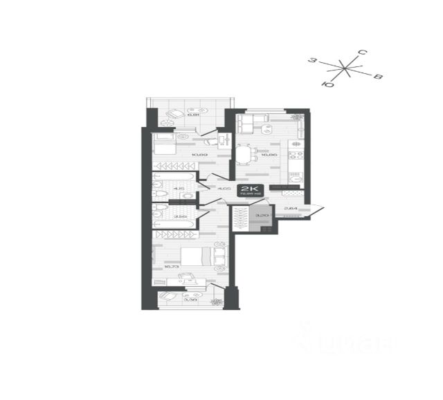 Квартира находится в Квартале мечтателей "Астро". Жилой комплекс от "Паритет Девелопмент" строится в Тюменской слободе на улице Сергея Джанбровского 19 к1. Характеристики квартиры: этаж - 2 количество комнат - 2 номер помещения - 6 площадь квартиры - 46,3 кв.м высота потолка - 2,72 м Это экологически чистая зона с видом на лес с разнообразием хвойных и лиственных деревьев. Вся инфраструктура в шаговой доступности - магазины, кафе, пункты выдачи. В планах - школа и детский сад. Закрытый двор без машин позволит жителям чувствовать себя в безопасности в кругу своих. В нем предусмотрены детские и спортивные площадки, зоны отдыха. Жилой комплекс "Астро" включает 6 секций высотой 9-15 этажей с подземным паркингом. В общей сложности в нем всего 384 квартиры. На 1 этажах появится коммерческая инфраструктура. Срок сдачи 1 кв. 2026 года. Планировки учитывают различные сценарии жизни, продуманы и функциональны. В квартирах выполнена стяжка пола с шумоизоляцией, выровнены стены, разводка отопления - горизонтальная - в полу, установлены счетчики с телеметрией. Эту планировку можно приобрести с готовой отделкой в темном или светлом цветовом решении, а также с кухонным гарнитуром, мебелью и декором. Большие окна наполняют квартиру естественным светом. Выделены зоны для работы и отдыха. Просторный санузел позволяет свободно разместить и ванну, и стиральную машину. Большая кухня имеет функциональную планировку, где комфортно собираться всей семьей или с друзьями. Здесь легко расположится кухонный гарнитур, стол со стульями и место для отдыха.