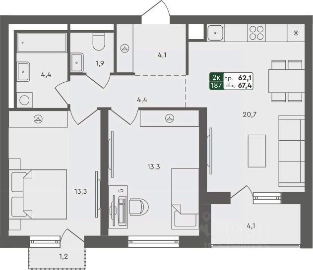 Продаётся 2-комнатная квартира в сданном доме (Бульварная, 1 (ГП-1)), срок сдачи: II-кв. 2025, общей площадью 68.1 кв.м., на 4 этаже. Проект в формате "Дома не выше сосен" отражает синтез великолепной архитектуры, престижной инфраструктуры и разумной стоимости. Жилье повышенного качества по доступной цене городского типа (квартиры), таунхаусы и индивидуальные дома с земельными участками характеризуются высокой транспортной доступностью исторического Тобольского тракта и формируют гармоничную и экологичную среду для комфортного проживания. Неповторимый архитектурный облик, выполненный с уважением и вниманием к природному ландшафту. Малоэтажные дома до 4 этажей соразмерны деревьям и не скрывают кромку леса. В квартирах с террасами и панорамными окнами наслаждаться окружающими пейзажами будет еще приятнее. В жилом комплексе предлагаются более 40 планировочных решений, включая особые форматы квартир. "Ритмы" - это. Нет ни одного предложения исключительный синтез современного жилья и загородного образа жизни: - функциональные по площади объекты - авторская архитектура российского архитектурного бюро "А.Лен" - индивидуальные фасады и атмосфера небольшого уютного европейского пригорода - качественное благоустройство - развитая инфраструктура - высокая транспортная доступность - хорошая экология