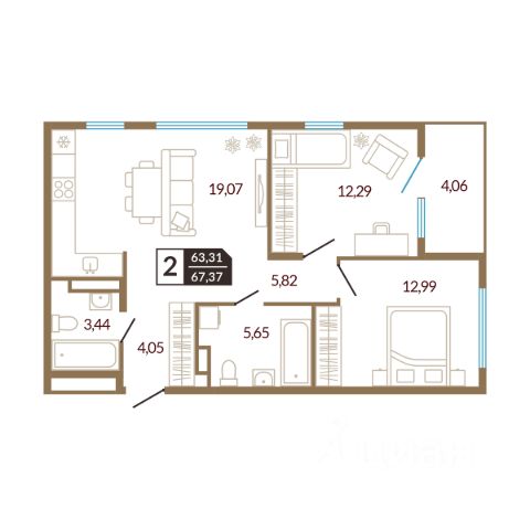Квартира находится в ЖК "Счастье". Это современный малоэтажный жилой комплекс в окружении березовой рощи. До центра города 10 минут на автомобиле. В 5 минутах езды —роща Декабристов, памятник природы регионального значения Дома расположены по адресу: Тюменская область, г. Ялуторовск, ул. Свободы, 240 и 242. Дома ГП-1 и ГП-2 - сданы. Срок сдачи ГП-3, ГП-4 - 3 квартал 2025-2026 гг. Дворы безопасны и выполнены в концепции Двор без машин- разведены потоки движения транспорта и пешеходов, а парковки удалены от детских площадок. Дворы зонированы по функциям и возрасту жителей, использованы тактильно приятные материалы. Там будет интересно и малышам, и подросткам. Для взрослых спроектированы спортивные зоны и места тихого отдыха. Дома ЖК "Счастье" построены из силикатного блока толщиной 250 мм с применением эффективного утеплителя. Декоративная фасадная штукатурка применяется для облицовки дома способом "мокрый фасад". Квартиры сдаются в улучшенной отделке. Установлены счетчики воды и электроэнергии. Входная дверь - стальная с утеплением и шумоизоляцией. Выполнена цементно-песчаная полусухая стяжка пола, горизонтальная разводка отопления. Выровнены стены и потолки, установлены радиаторы и пластиковые окна. Характеристики квартиры: этаж 4 количество комнат - 3 номер помещения - 40 площадь квартиры - 58,67 кв.м высота потолка - 2,75 м Планировка квартиры отличается продуманностью. Пространство организовано с учетом потребностей каждого члена семьи. В квартире созданы отдельные зоны для отдыха и работы, что способствует рациональному использованию площади. Спальня оформлена для обеспечения комфортного отдыха, а санузел спроектирован с учетом всех необходимых удобств, включая место для хранения хозяйственных принадлежностей. Все зоны оптимально освещены и имеют стандартные размеры для размещения мебели и сантехники. Кухня подойдет не только для приготовления пищи, но и для приема гостей. Застройщик предлагает несколько вариантов ремонта: чистовая отделка, ремонт с кухней, ремонт с мебелью и техникой. Данную услугу можно включить в ежемесячный платеж по ипотеке.