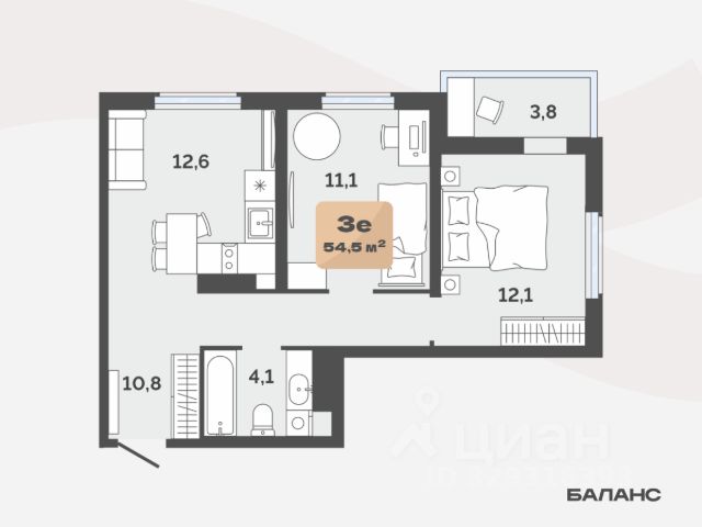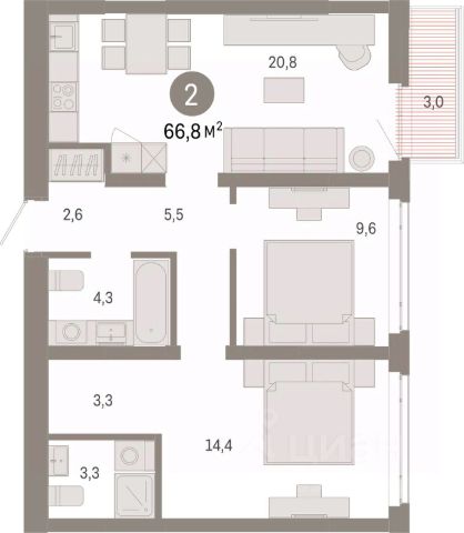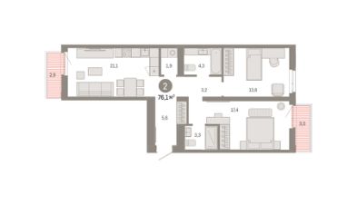 Двухкомнатная квартира с предчистовой отделкой в ЖК "Республики 205" на 3 этаже. Общая площадь: 68.59 кв.м., жилая: 26.5 кв.м., площадь просторной кухни-гостиной: 22.2 кв.м. Квартира - распашонка, без проходных комнат, окна выходят на paзные стороны дома. В квартире два совмещенных санузла. Высота потолков 2.7 м. Купить квартиру можно с помощью программ покупки от застройщика Брусника: - ипотека по эксклюзивной ставке с помощью в получении положительного кредитного решения через сервис ипотечный брокер; - квартиры в рассрочку без процентов от застройщика Брусника; - обмен квартиры на новую. Получить одобрение ипотеки или рассрочку, а также осуществить обмен квартир можно онлайн. Дом монолитный, многоподъездный, переменной этажности, от 7 до 16 этажей. Квартира находится в 4-й секции высотой 7 этажей в корпусе 2. На этаже 4 квартиры. В подъезде 1 грузовой лифт. Начало строительства - 1 квартал 2024 года. Окончание строительства - 2 квартал 2026 года. Оформление сделки по договору долевого участия. Район Проект расположен в границах улиц Пермякова, Энергетиков, Воровского и Республики. До центра города — 10 минут на машине. Рядом — автомобильная развязка на пересечении улиц Пермякова и Республики. В шаговой доступности есть школы, детские сады, поликлиники, крупный торговый центр, автовокзал и несколько скверов. Проект "Республики 205" — это проект комплексного развития территории, уникальный по своему наполнению. Переосмысляя бывшую территорию завода медицинского оборудования, мы создадим новое место силы — микрорайон, насыщенный деловой, развлекательной, рекреационной, игровой, образовательной и медицинской инфраструктурой. До каждого полезного сервиса здесь можно будет дойти за 15 минут. Локальными центрами "Республики 205" будут общественные пространства — скверы, парки, бульвары и площади. В границах нашего участка мы намерены разместить школу, рассчитанную на 1550 учеников, два детских сада на 300 мест и встроенный детский сад на 100 мест. В одном из цехов бывшего завода расположится креативный кластер "Кузница". Он станет площадкой для нескольких институций — галереи, лектория, книжного магазина-библиотеки, кинобара и точек креативного pop-up-ритейла. Пешеходные бульвары внутри района соединят между собой улицу ресторанов, детские и спортивные площадки, событийную площадь и летний кинотеатр. Идентификатор квартиры по базе застройщика: РСП-02-4-4. #Z3FFug Купить 2-комнатную квартиру с возможностью обмена в Тюмени.