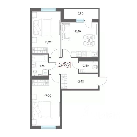 • ✓ В базе Циан 204 2-комнатных квартир от застройщика в Тобольске