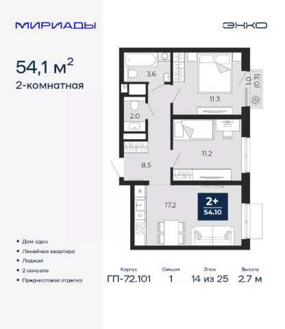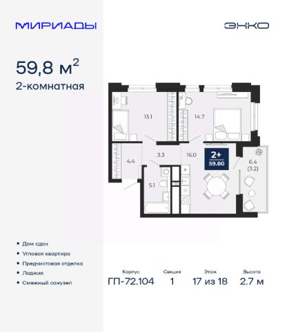 Просторная 2-комн. квартира с европланировкой и предчистовой отделкой в ЖК "Мириады" на 1 этаже. Общая площадь: 40.7 кв.м., жилая: 20.7 кв.м., суммарная площадь гостиной-столовой с кухонной зоной: 15.4 кв.м. Европланировка, кухня-гостиная - идеальный вариант для тех, кто любит часто принимать гостей. Комнаты изолированные, все окна выходят на одну сторону. В квартире одна лоджия, один совмещенный санузел. Высота потолков 2.7 м. Дом монолитный, двухподъездный, переменной этажности, от 14 до 18 этажей. Квартира находится во 2-й секции высотой 14 этажей в корпусе ГП-72.104. На этаже 8 квартир. В подъезде 1 пассажирский и 1 грузовой лифт. В настоящее время строительство окончено, дом сдан в 4 квартале 2025 года. Оформление сделки по договору купли-продажи. Вселенная бесконечных историй. Ранее невиданный Тюмени масштаб: территория 240 гектаров и 1 650 000 м² застройки. Мириады это город масштабных перемен и больших возможностей. Город зеленых рощ и зеркальных озер. Город для работы, учебы и развлечений. Город для детей и их родителей. Город для всех и каждого. Проект расположен в районе Мыс рядом с ТРЦ "Тюмень Сити Молл" в границах улицы Тимофея Чаркова, Тобольского тракта и объездной дороги. Срок полного освоения территории - до 2034 года. #Z6tdCv 2-комнатная квартира от застройщика в Тюменской области.