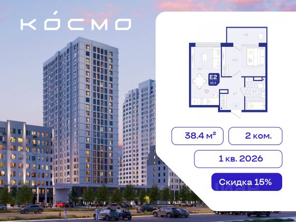Дом монолитный, многоподъездный, переменной этажности, от 7 до 11 этажей. Квартира находится во 2-й секции высотой 7 этажей в корпусе 2. На этаже 7 квартир. В подъезде 1 пассажирский и 1 грузовой лифт. Окончание строительства - 1 квартал 2027 года. Оформление сделки по договору долевого участия.