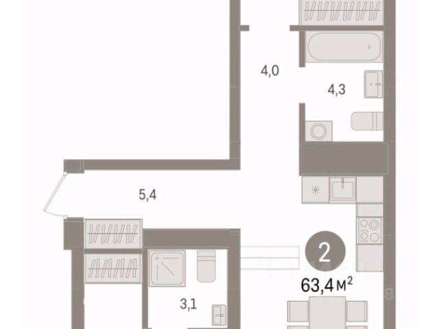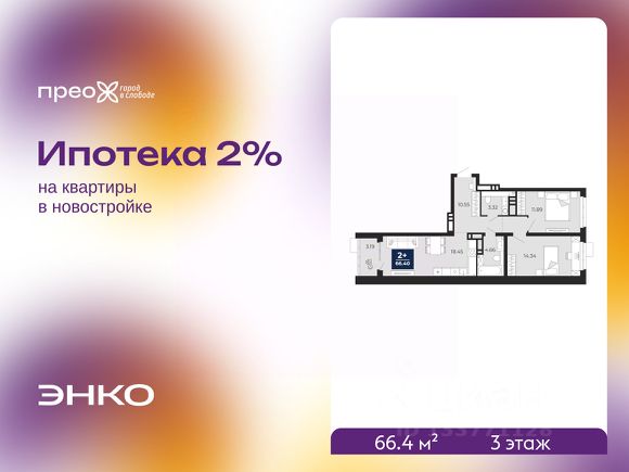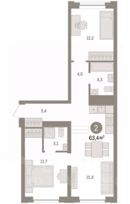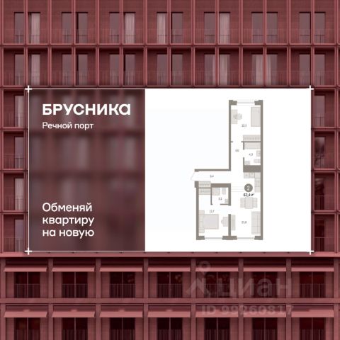 Продаётся квартира площадью 56.7 м2 в жилом комплексе "Айрис".