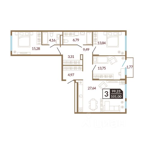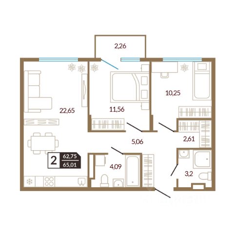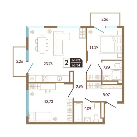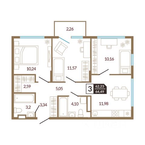 Квартира находится в ЖК "Счастье". Это современный малоэтажный жилой комплекс в окружении березовой рощи. До центра города 10 минут на автомобиле. В 5 минутах езды —роща Декабристов, памятник природы регионального значения Дома расположены по адресу: Тюменская область, г. Ялуторовск, ул. Свободы, 240 и 242. Дома ГП-1 и ГП-2 - сданы. Срок сдачи ГП-3, ГП-4 - 3 квартал 2025-2026 гг. Дворы безопасны и выполнены в концепции Двор без машин- разведены потоки движения транспорта и пешеходов, а парковки удалены от детских площадок. Дворы зонированы по функциям и возрасту жителей, использованы тактильно приятные материалы. Там будет интересно и малышам, и подросткам. Для взрослых спроектированы спортивные зоны и места тихого отдыха. Дома ЖК "Счастье" построены из силикатного блока толщиной 250 мм с применением эффективного утеплителя. Декоративная фасадная штукатурка применяется для облицовки дома способом "мокрый фасад". Квартиры сдаются в улучшенной отделке. Установлены счетчики воды и электроэнергии. Входная дверь - стальная с утеплением и шумоизоляцией. Выполнена цементно-песчаная полусухая стяжка пола, горизонтальная разводка отопления. Выровнены стены и потолки, установлены радиаторы и пластиковые окна. Характеристики квартиры: этаж 5 количество комнат - 3 номер помещения - 115 площадь квартиры - 60,43 кв.м высота потолка - 2,75 м Планировка квартиры отличается продуманностью. Пространство организовано с учетом потребностей каждого члена семьи. В квартире созданы отдельные зоны для отдыха и работы, что способствует рациональному использованию площади. Спальня оформлена для обеспечения комфортного отдыха, а санузел спроектирован с учетом всех необходимых удобств, включая место для хранения хозяйственных принадлежностей. Все зоны оптимально освещены и имеют стандартные размеры для размещения мебели и сантехники. Кухня подойдет не только для приготовления пищи, но и для приема гостей. Застройщик предлагает несколько вариантов ремонта: чистовая отделка, ремонт с кухней, ремонт с мебелью и техникой. Данную услугу можно включить в ежемесячный платеж по ипотеке.