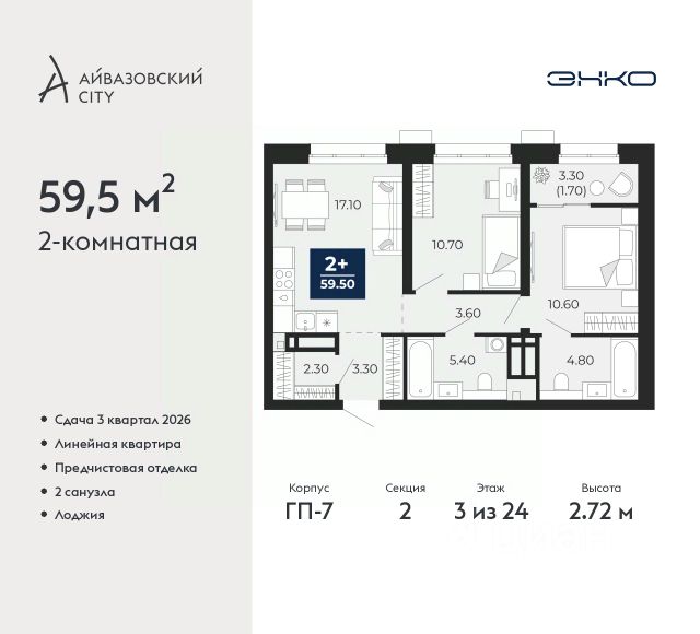 2-комн. квартира от застройщика с предчистовой отделкой в ЖК "Окинава" на 3 этаже. Общая площадь: 64.42 кв.м., жилая: 26.39 кв.м., площадь просторной кухни-столовой: 16.78 кв.м. Угловая квартира, идеально подойдет любителям тишины и панорамных видов. В квартире одна лоджия, один совмещенный и один раздельный санузел. Высота потолков 2.7 м.