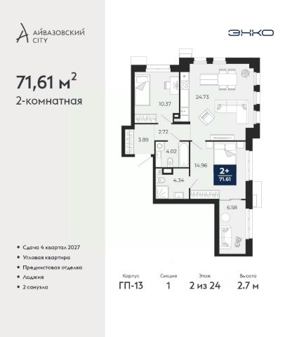 Дом монолитный, многоподъездный, переменной этажности, от 9 до 17 этажей. Квартира находится в 7-й секции высотой 9 этажей в корпусе 1. На этаже 6 квартир. В подъезде 1 грузовой лифт. Начало строительства - 2 квартал 2023 года. В настоящее время строительство завершено, дом сдан в 4 квартале 2025 года. Оформление сделки по договору купли-продажи.