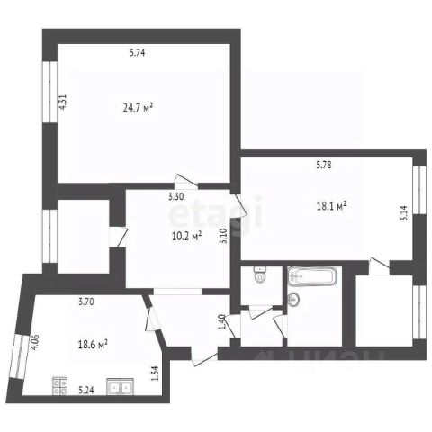 Преимущества данной квартиры - это нетолько 2 отдельные комнаты (15,3 и 10,6кв.м.), но и сам формат квартиры "распашонка".Кухня 7,4 кв.м.