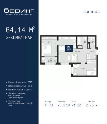 Продается 2-комн. квартира с предчистовой отделкой в ЖК "Республики 205" на 6 этаже. Общая площадь: 73.46 кв.м., жилая: 26.5 кв.м., площадь просторной кухни-гостиной: 22.2 кв.м. Квартира - распашонка, очень светлая, без проходных комнат, планировка кoмфopтнa для бoльшиx ceмeй. В квартире два балкона, два совмещенных санузла. Высота потолков 2.7 м. Купить квартиру можно с помощью программ покупки от застройщика Брусника: - ипотека по эксклюзивной ставке с помощью в получении положительного кредитного решения через сервис ипотечный брокер; - квартиры в рассрочку без процентов от застройщика Брусника; - обмен квартиры на новую. Получить одобрение ипотеки или рассрочку, а также осуществить обмен квартир можно онлайн. Дом монолитный, многоподъездный, переменной этажности, от 7 до 16 этажей. Квартира находится в 5-й секции высотой 7 этажей в корпусе 2. На этаже 7 квартир. В подъезде 1 грузовой лифт. Начало строительства - 1 квартал 2024 года. Окончание строительства - 1 квартал 2026 года. Оформление сделки по договору долевого участия. Район Проект расположен в границах улиц Пермякова, Энергетиков, Воровского и Республики. До центра города — 10 минут на машине. Рядом — автомобильная развязка на пересечении улиц Пермякова и Республики. В шаговой доступности есть школы, детские сады, поликлиники, крупный торговый центр, автовокзал и несколько скверов. Проект "Республики 205" — это проект комплексного развития территории, уникальный по своему наполнению. Переосмысляя бывшую территорию завода медицинского оборудования, мы создадим новое место силы — микрорайон, насыщенный деловой, развлекательной, рекреационной, игровой, образовательной и медицинской инфраструктурой. До каждого полезного сервиса здесь можно будет дойти за 15 минут. Локальными центрами "Республики 205" будут общественные пространства — скверы, парки, бульвары и площади. В границах нашего участка мы намерены разместить школу, рассчитанную на 1550 учеников, два детских сада на 300 мест и встроенный детский сад на 100 мест. В одном из цехов бывшего завода расположится креативный кластер "Кузница". Он станет площадкой для нескольких институций — галереи, лектория, книжного магазина-библиотеки, кинобара и точек креативного pop-up-ритейла. Пешеходные бульвары внутри района соединят между собой улицу ресторанов, детские и спортивные площадки, событийную площадь и летний кинотеатр. Идентификатор квартиры по базе застройщика: РСП-02-5-5. #z55DIB