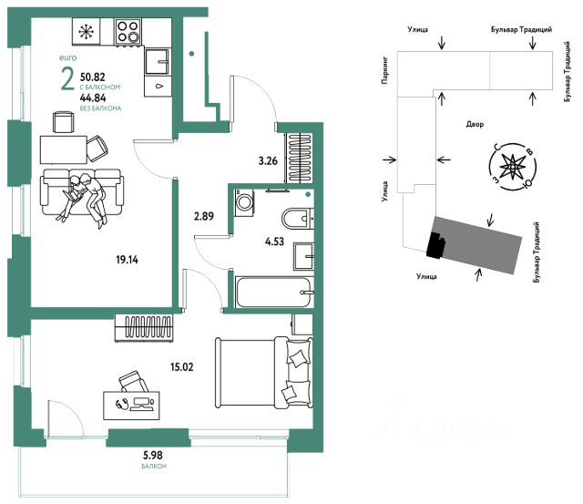 Объявление от застройщика Страна Девелопмент. Покупка квартиры защищена банком. Продается 2комнатная квартира на 2 этаже от застройщика Страна Девелопмент. Площадь квартиры 50,11 кв. м. О ПРOЕКТЕ Mикpорайон "Домaшний" — этo 6 очередей стpоитeльcтвa, 24 дома пеpемeннoй этажнoсти. Каждый дом уникальный. Внутри микрорайона появится огромный пешеходный бульвар — бульвар Традиций. Центром притяжения станут открытые пространства для отдыха жителей и гостей микрорайона, которые легко меняются под сезонные сценарии отдыха: новогодняя елка, ярмарки, кинопоказы и т.д. У каждого дома обустроен приватный двор с зонами для активного и спокойного отдыха. В активной зоне детские разновозрастные площадки с горками, песочницами и качелями, воркаут-зоны. В спокойной — скамейки, мини-амфитеатры, закрытые перголы. Уютной атмосферу сделает обильное озеленение и освещение "домашними" торшерами. ОТДЕЛКА Квартиры сдаются с предчистовой отделкой. Все грязные работы выполнены: произведена разводка электричества и отопления; выполнена стяжка пола; стены выровнены "под маяк". В квартире установлены розетки, выключатели и радиаторы. На входе — надежная стальная дверь. Вам остается только выбрать материалы и начать ремонт Доступна опция "Ремонт от застройщика". Стоимость можно включить в ипотеку. КУХНЯ С ТЕХНИКОЙ Теперь дополнительно к ремонту можно заказать кухню со встроенной техникой. Эргономику и функциональное наполнение разработали под каждую планировку. ПОЛНАЯ МЕБЛИРОВКА Больше не нужно тратить время даже на подбор, доставку и сборку мебели.Вы можете включить в стоимость квартиры с ремонтом полную меблировку. Что входит в меблировку? - Кухня с техникой и сантехникой - Диван - Кровать - Шкаф в спальне - Шкаф в прихожей