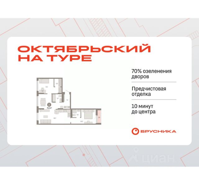 Современный жилой комплекс "Ютта" на берегу Туры, просторная 2-комнатная квартира с кухней-гостиной, отличный вариант, чтобы сразу заехать и жить.