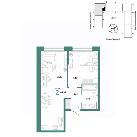 Объявление от застройщика Страна Девелопмент. Покупка квартиры защищена банком. Продается 2комнатная квартира на 5 этаже от застройщика Страна Девелопмент. Площадь квартиры 48,96 кв. м. О ПРOЕКТЕ Mикpорайон "Домaшний" — этo 6 очередей стpоитeльcтвa, 24 дома пеpемeннoй этажнoсти. Каждый дом уникальный. Внутри микрорайона появится огромный пешеходный бульвар — бульвар Традиций. Центром притяжения станут открытые пространства для отдыха жителей и гостей микрорайона, которые легко меняются под сезонные сценарии отдыха: новогодняя елка, ярмарки, кинопоказы и т.д. У каждого дома обустроен приватный двор с зонами для активного и спокойного отдыха. В активной зоне детские разновозрастные площадки с горками, песочницами и качелями, воркаут-зоны. В спокойной — скамейки, мини-амфитеатры, закрытые перголы. Уютной атмосферу сделает обильное озеленение и освещение "домашними" торшерами. ОТДЕЛКА Квартиры сдаются с предчистовой отделкой. Все грязные работы выполнены: произведена разводка электричества и отопления; выполнена стяжка пола; стены выровнены "под маяк". В квартире установлены розетки, выключатели и радиаторы. На входе — надежная стальная дверь. Вам остается только выбрать материалы и начать ремонт Доступна опция "Ремонт от застройщика". Стоимость можно включить в ипотеку. КУХНЯ С ТЕХНИКОЙ Теперь дополнительно к ремонту можно заказать кухню со встроенной техникой. Эргономику и функциональное наполнение разработали под каждую планировку. ПОЛНАЯ МЕБЛИРОВКА Больше не нужно тратить время даже на подбор, доставку и сборку мебели.Вы можете включить в стоимость квартиры с ремонтом полную меблировку. - Что входит в меблировку? - Кухня с техникой и сантехникой - Диван - Кровать - Шкаф в спальне - Шкаф в прихожей На консультации менеджер подскажет, какие акции действуют, и как получить одобрение по ипотеке с низкой ставкой. Более подробная информация по телефону. Застройщик ООО СЗ "Страна Запад". Проектные декларации на сайте наш.дом.рф.