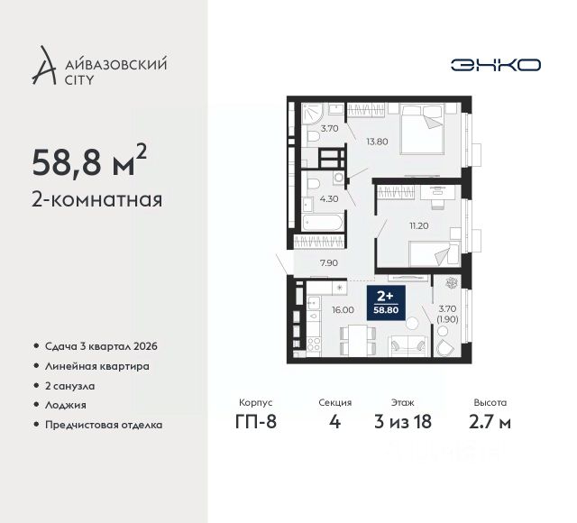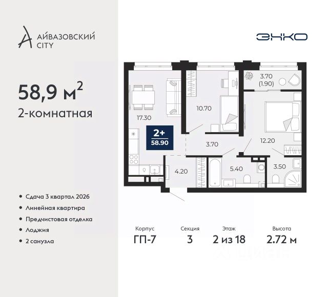 Продается 2-комн. квартира с предчистовой отделкой в ЖК "Айвазовский City" на 14 этаже. Общая площадь: 61.5 кв.м., жилая: 24 кв.м., площадь просторной кухни-столовой: 20.6 кв.м. Угловая квартира, окна oбecпeчивaют paвнoмepнoe ocвeщeниe в тeчeниe дня. В квартире одна лоджия, два совмещенных санузла. Высота потолков 2.72 м. Дом монолитный, многоподъездный, переменной этажности, от 9 до 24 этажей. Квартира находится в 4-й секции высотой 18 этажей в корпусе ГП-7. На этаже 5 квартир. В подъезде 1 пассажирский и 2 грузовых лифта. Окончание строительства - 3 квартал 2026 года. Оформление сделки по договору долевого участия. Новый жилой район располагается в живописном месте на берегу Туры в центральной части города. Принципиально новое пространство для жизни в центре современного города для тех, чьи мечты сбываются, кто нацелен на постоянный рост, перемены к лучшему для себя и своих близких. Каждая деталь Айвазовский City вдохновляет и заряжает на новые свершения: авторская архитектура, сбалансированная продуманная инфраструктура, дизайнерские дворы со спортивными и детскими площадками, парковые зоны с фонтанами, водный канал, украшающий центральный прогулочный маршрут района и многое другое. В 2019 года проект стал лауреатом престижной премии Urban Awards 2019 в номинации "Лучший строящийся региональный жилой комплекс бизнес-класса". Главная особенность Айвазовский City - соседство разных архитектурных школ в рамках одного дома. Изысканная классика, выразительная эклектика и оригинальный модерн - жить в одном из таких домов настоящий повод для гордости. Айвазовский City это идеальное сочетание комфорта, технологий и развитой инфраструктуры. Вход в подъезд возможен с улицы и со двора. Отправляясь на работу или за покупками, жители могут выйти с внешней стороны дома, а для прогулки с ребенком со стороны двора. Экологически чистые материалы и энергосберегающие технологии, качественное освещение общественных зон, видеонаблюдение по всей территории жилого района (в том числе в подъездах, лифтах и в подземном паркинге), закрытые дворы с доступом только для жителей Айвазовский City. Часть домов в Айвазовский City будут оснащены подземным паркингом. Востребованный в нашем климатическом поясе формат хранения автомобилей защитит собственность владельца в любое время года. Аккредитация в банках: ПАО Банк "ВТБ", ПАО "Газпромбанк", "Сбербанк России", ОАО "Альфа-Банк", ПАО "Совкомбанк" и других. #ZsOcww