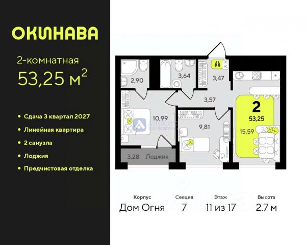 2-комн. квартира с предчистовой отделкой в ЖК "Дивный квартал у озера" на 3 этаже. Общая площадь: 55.7 кв.м., жилая: 24 кв.м., площадь просторной кухни-столовой: 16.5 кв.м. Комнаты изолированные, все окна выходят на одну сторону. В квартире одна лоджия, один совмещенный и один раздельный санузел. Высота потолков 2.7 м. Квартира будет сдаваться с предчистовой отделкой White Box: выровнены и оштукатурены стены, проведено электричество и отопление, установлены радиаторы. Вы также можете приобрести квартиру с ремонтом от застройщика, представленным в трех цветовых решениях Scandi, Wood и Coffee и включающим: ламинат, обои под покраску, двери, натяжной потолок, санузел с сантехникой. При желании вы можете заказать отделку под ключ, варианты возможных решений представлены в альбоме фотографий. Дом монолитный, черырехподъездный, переменной этажности, от 7 до 9 этажей. Квартира находится в 1-й секции высотой 7 этажей в корпусе ГП-5. На этаже 9 квартир. В подъезде 1 грузовой лифт. Окончание строительства - 4 квартал 2025 года. Оформление сделки по договору долевого участия. "Дивный квартал у озера" современный жилой квартал, удобно расположенный в 10-ти минутах от центра Тюмени, в уютном районе рядом с зеленым массивом и озером Алебашево. Комплекс находится между улицами Мельникайте и Алебашевская, что обеспечивает его хорошую транспортную доступность до центра на автомобиле всего 10 минут. Рядом с комплексом расположен Лесопарк имени Гагарина, экзотический Парк дружбы между Россией и Республикой Корея. "Дивный квартал у озера" объединяет архитектуру современной городской застройки и природную эстетику. Уютные дворы жилого комплекса будут не только безопасными, но и тихими. Закрытая территория надёжно защищена от шума и посторонних глаз. Здесь будут места для отдыха, детские площадки, зоны для выгула собак. В холлах первого этажа расположены мягкая зона ожидания, общественные санузлы и просторная колясочная. Квартал будет располагать богатой инфраструктурой: на первых этажах домов разместятся магазины, пекарни, кофейни, пункты выдачи, аптеки, детские центры, цветочные салоны и многое другое, что сделает жизнь поистине комфортной. В комплексе есть теплый подземный паркинг и кладовые. #zM9Abs