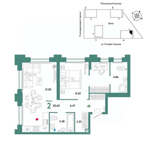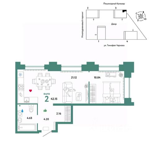 Просторная двухкомнатная квартира с предчистовой отделкой в ЖК "Мириады" на 9 этаже. Общая площадь: 54 кв.м., жилая: 21.7 кв.м., площадь просторной кухни-столовой: 17.9 кв.м. Квартира угловая, идеально подойдет любителям тишины и панорамных видов. В квартире одна лоджия, один раздельный санузел. Высота потолков 2.7 м. Дом монолитный, трехподъездный, переменной этажности, от 14 до 16 этажей. Квартира находится в 3-й секции высотой 14 этажей в корпусе ГП-72.103. На этаже 8 квартир. В подъезде 1 пассажирский и 1 грузовой лифт. Окончание строительства - 4 квартал 2025 года. Оформление сделки по договору долевого участия. Вселенная бесконечных историй. Ранее невиданный Тюмени масштаб: территория 240 гектаров и 1 650 000 м² застройки. Мириады это город масштабных перемен и больших возможностей. Город зеленых рощ и зеркальных озер. Город для работы, учебы и развлечений. Город для детей и их родителей. Город для всех и каждого. Проект расположен в районе Мыс рядом с ТРЦ "Тюмень Сити Молл" в границах улицы Тимофея Чаркова, Тобольского тракта и объездной дороги. Срок полного освоения территории - до 2034 года. #2M7EzB