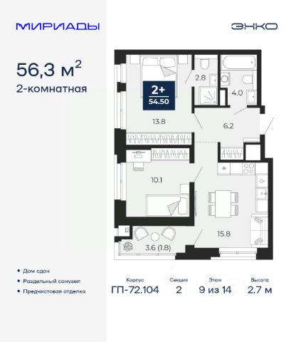 Спешите забронировать, пока действует скидка, предложение ограничено! Стоимость квартиры указана со скидкой, ваша экономия составит 318,888 руб. Информация по телефону, мы вам все подробно расскажем. Продается 2-комн. квартира с европланировкой и предчистовой отделкой в ЖК "Мириады" на 1 этаже. Общая площадь: 40.7 кв.м., жилая: 20.7 кв.м., суммарная площадь гостиной-столовой с кухонной зоной: 15.4 кв.м. Европейская планировка, кухня-гостиная - идеальный вариант для тех, кто любит часто принимать гостей. Комнаты изолированные, все окна выходят на одну сторону. В квартире одна лоджия, один совмещенный санузел. Высота потолков 2.7 м. Дом монолитный, двухподъездный, переменной этажности, от 14 до 18 этажей. Квартира находится во 2-й секции высотой 14 этажей в корпусе ГП-72.104. На этаже 8 квартир. В подъезде 1 пассажирский и 1 грузовой лифт. Строительство окончено, дом сдан в 4 квартале 2025 года. Оформление сделки по договору купли-продажи. Вселенная бесконечных историй. Ранее невиданный Тюмени масштаб: территория 240 гектаров и 1 650 000 м² застройки. Мириады это город масштабных перемен и больших возможностей. Город зеленых рощ и зеркальных озер. Город для работы, учебы и развлечений. Город для детей и их родителей. Город для всех и каждого. Проект расположен в районе Мыс рядом с ТРЦ "Тюмень Сити Молл" в границах улицы Тимофея Чаркова, Тобольского тракта и объездной дороги. Срок полного освоения территории - до 2034 года. #26TDcV