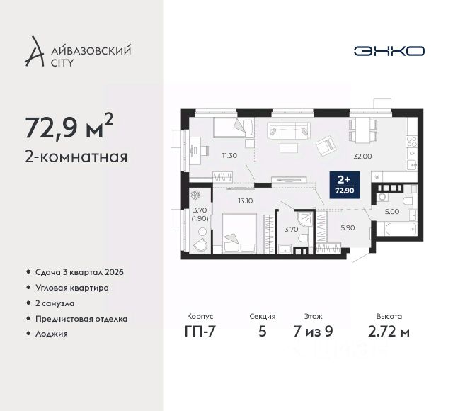Квартира в евроформате с кухней-гостиной и второй спальней. В одной из комнат выход на лоджию с угловым панорамным остеклением. Он с окнами в пол — будет больше света. В холле ниша под шкаф и установку обувницы. В квартире предчистовая отделка: стены оштукатурены и выровнены по общему уровню, на полу слой цементно-песчаного раствора с дополнительным гидроизоляционным слоем в ванной. Проведена электрика и готовы розетки с выключателями. А ещё установлены сейф-двери и счётчики с телеметрией. Это не чистовая отделка, но во время ремонта будет меньше пыли. Вокруг много школ и детских садов, есть качественные клиники и большой парк для прогулок. Детские и спортивные площадки в закрытых дворах. Для машин продуман крытый паркинг для автомобилей. Он в 6 минутах ходьбы. Способы покупки: — ипотечные программы — обмен вашего жилья на новую квартиру — дистанционная покупка Узнать дополнительную информацию и записаться на встречу в офисе продаж можно по номеру, указанному в объявлении. Купить 2-комнатную квартиру с евроремонтом в Тюменской области.