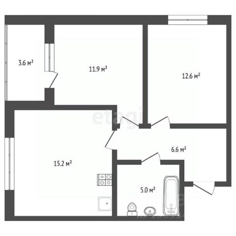 Квартира формата 2+ (евро трёшка) с современным ремонтом