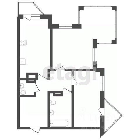 Две изолированные комнаты детская и взрослая спальни, кухня-гостиная, остекленный балкон, раздельный санузел.